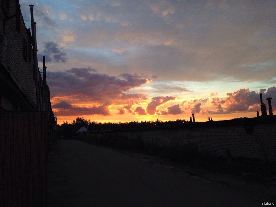 benzzzin Заехал вечером в гараж, увидел закат, решил поделиться с вами 10 лет назад Фотографировал на Iphone 5c [моё] Закат Фотография Гараж Красота Фото на тапок