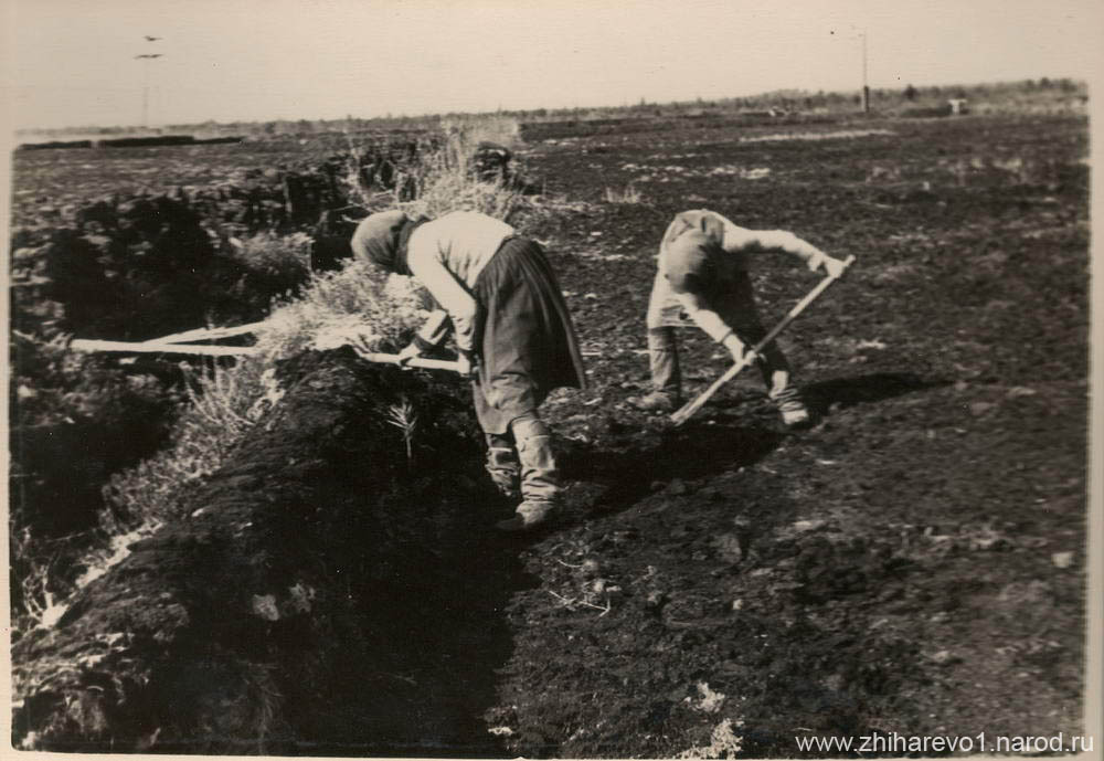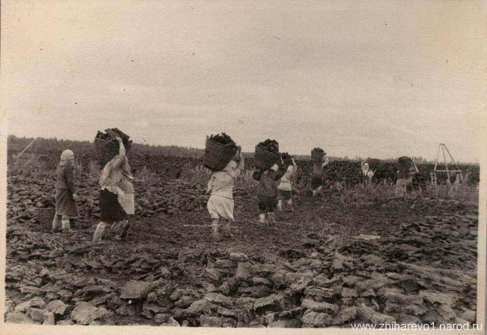 Зато благодаря сайту zhiharevo1.narod.ru можно увидеть уникальные фотографии тех времён — девушек, занятых на тяжёлой работе.