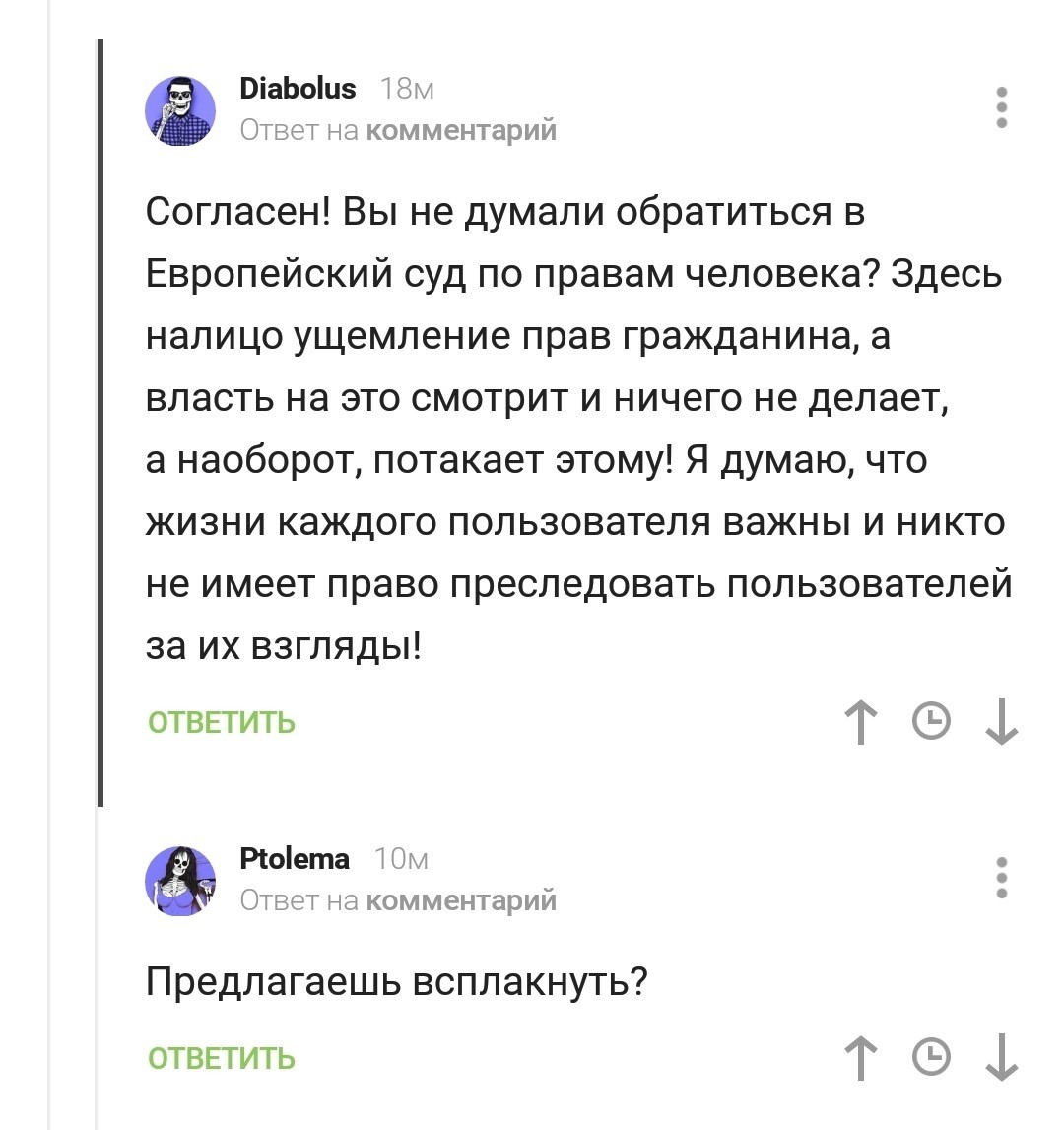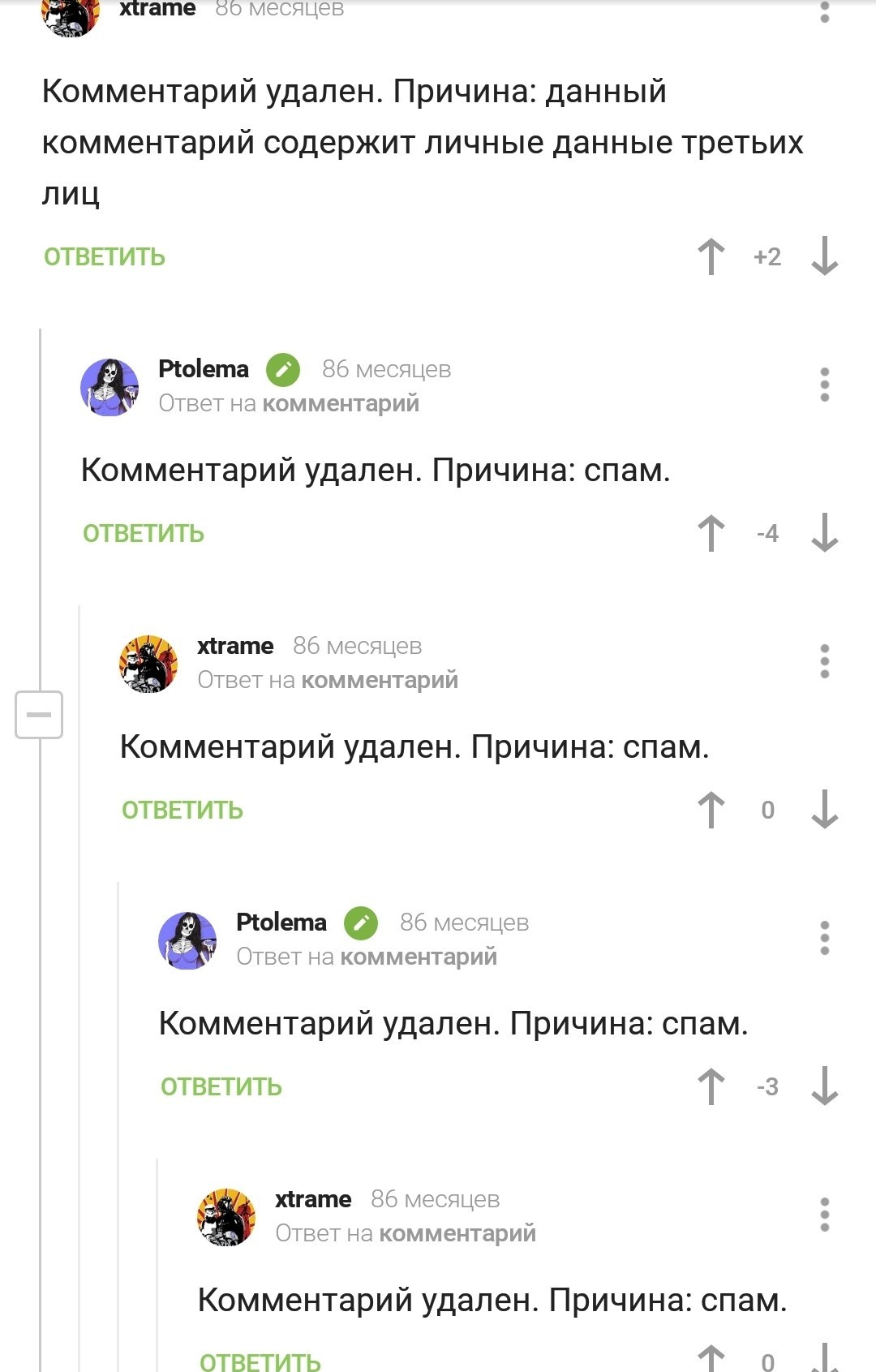 Чтож, подобный сговор с модерацией мог бы помочь, если бы через два года она не оставила под этим же постом комментарий от лица второй своей личности.