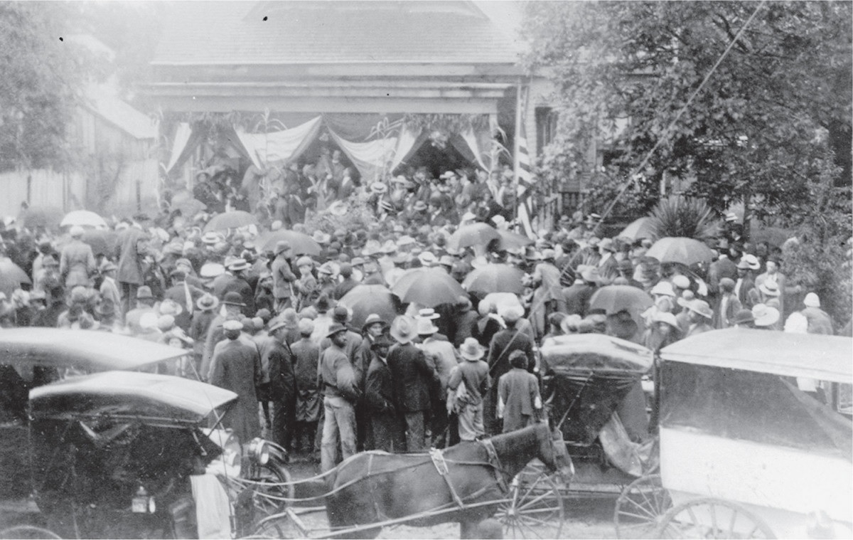 Местные жители собрались у дома Данбаров в Опелусасе, чтобы поприветствовать возвращение Бобби домой. 25 апреля, 1913 года.