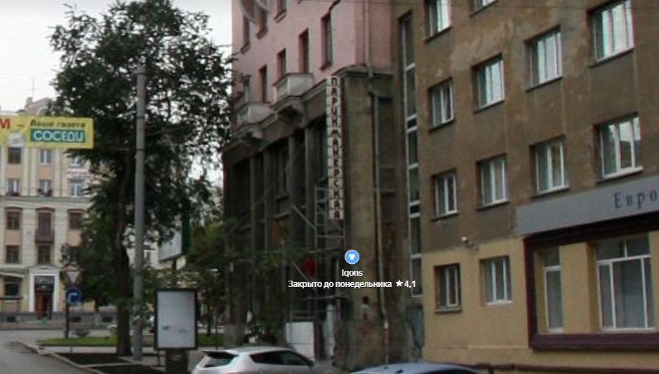 Для начала я сильно задумался, а что это была за надпись раньше. Перебрал множество вариантов, даже залез в поиск слова по маске, единственное, что мне приходило на ум - парикмахерская, но буквы не в том порядке.