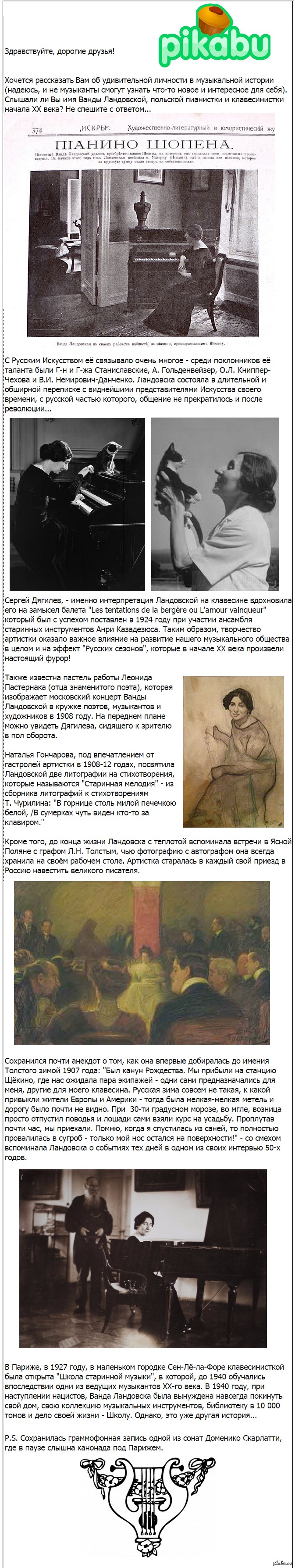 MisterJohn История Заглядывая на страницы прошлого 10 лет назад "Между двумя ударами метронома — пауза. Между двумя ударами сердца — целый мир." - Ванда Ландовс [моё] Музыка История Россия Лев Толстой Ванда Ландовска Искусство Кот Длиннопост