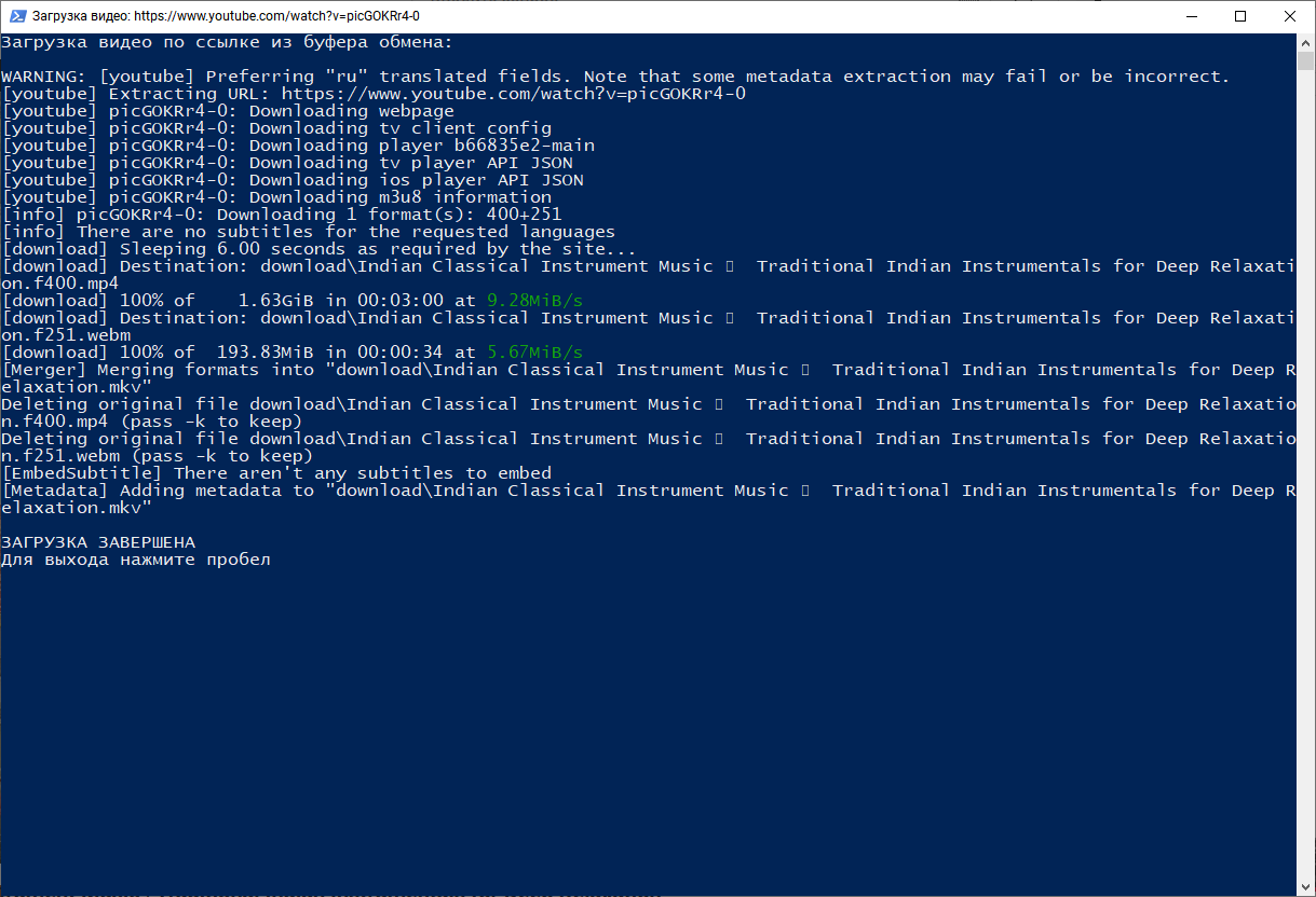 Делался для тыртуба и вк, но работает почти везде где есть кнопка - поделиться. собирал на питоне, исходник в комплекте, проверяет при запуске новые версии ffmpeg yt-dl, подгружает их в папку где располагается тело программы. После загрузки создаётся C:\Users\User\Downloads\VideoSaved и открывается сам каталог. Принцип работы, запускаем прогу, она, если в каталоге нет нужных компонентов сама подгружает их с гитхаба и распаковывает рядом с телом, в консоли предлагается выбор что сделать. На тыртубе, одноглазиках, вк есть кнопки поделиться, нам нужен код, копируем в проге правой кнопкой нажимаем, он вставился, жмём Enter, прога перебирает все доступные варианты и скачивает максимальное качество видео+аудио, микшует всё это в mkv с оригинальным названием.