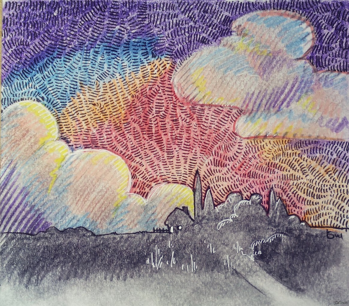Kaliitka Закат. 10 лет назад Творческие метания привели меня к такому. [моё] Рисунок Закат Смешанная техника Моё