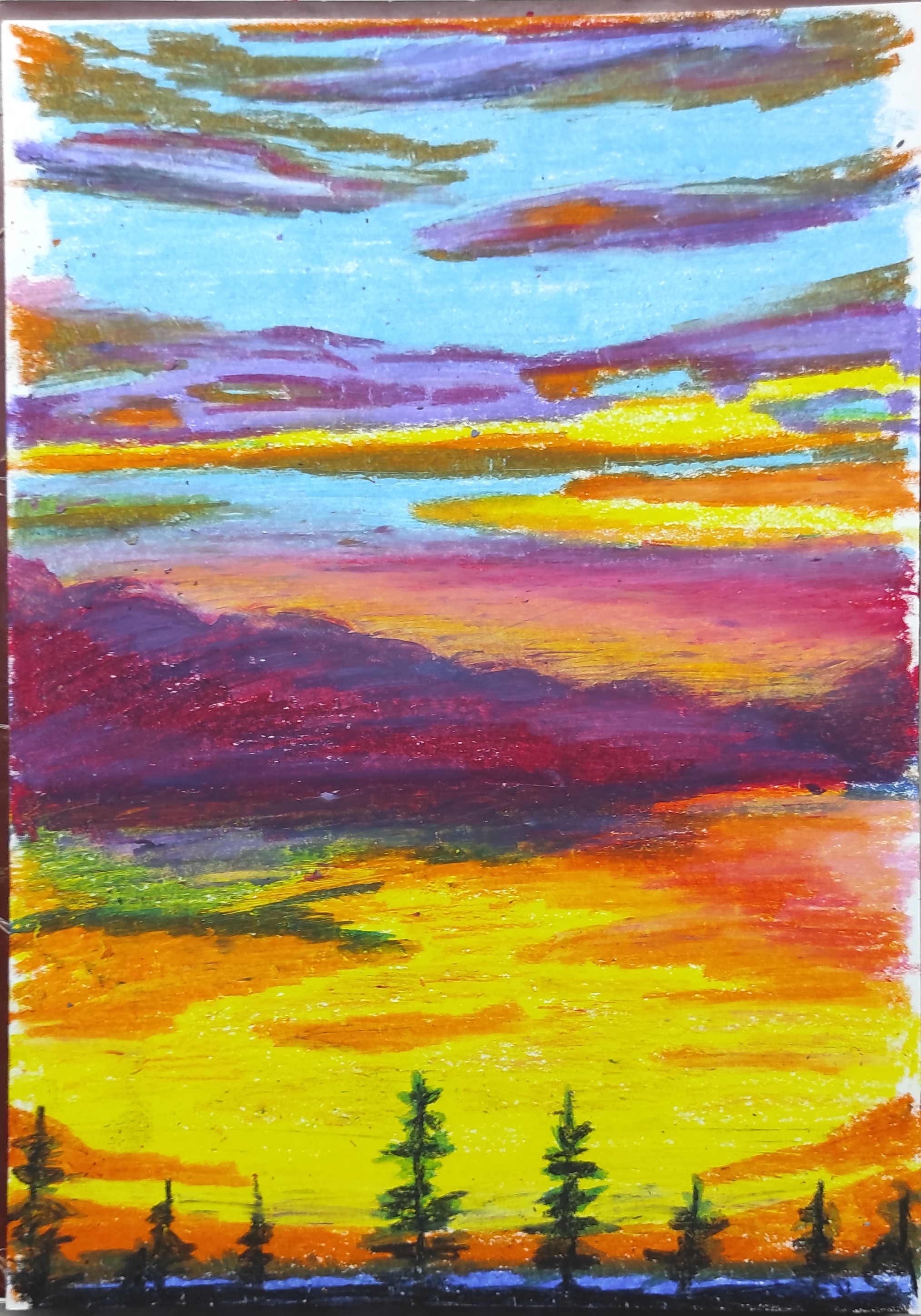 Закат, масляная пастель