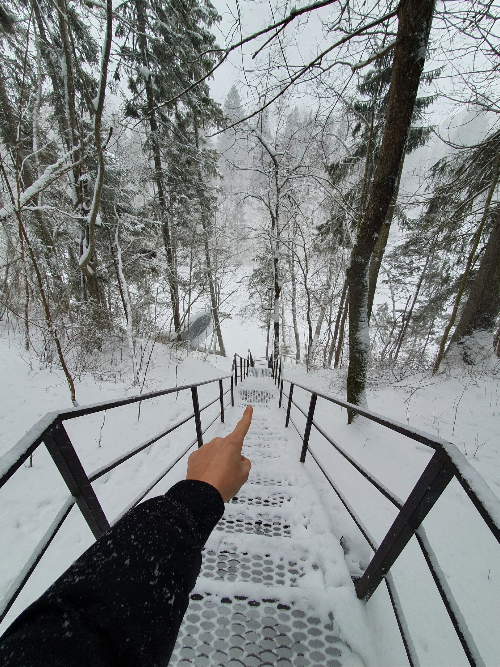 Озера расположены как бы в каньоне, спуск по лестнице: