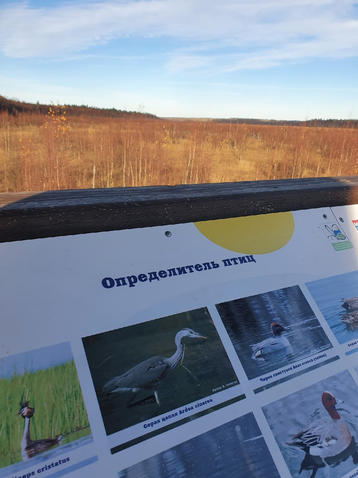 В заказнике расположены 4 орнитологические вышки для наблюдений, они довольно высокие и в хорошем состоянии. Говорят, с них иногда можно увидеть не только взлетающих птиц, но и даже лосей и тд, живности тут хватает, судя по стендам.