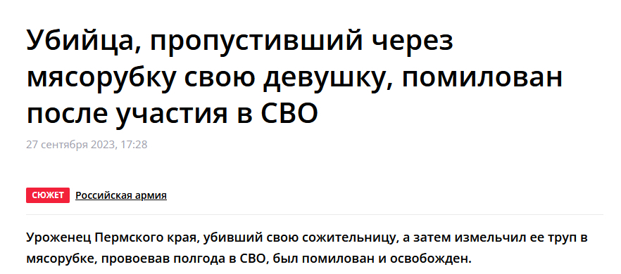 У нас же помиловали чувака, который свою девушку через мясорубку пропустил. Я уже мало чему удивляюсь после этого.