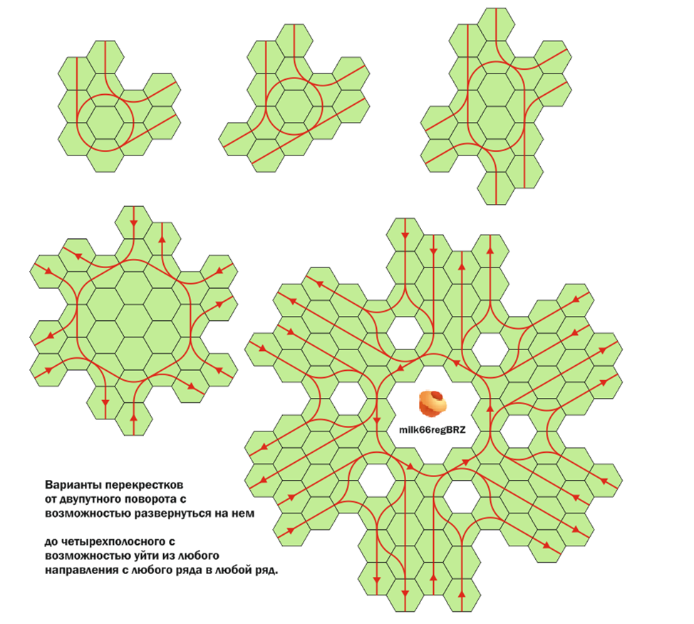 И пораскладывал. Например двупутный перекресток с возможностью развернутся на нем. И даже четырех путный (по две полосы в каждую сторону). И можно продолжать расширять.