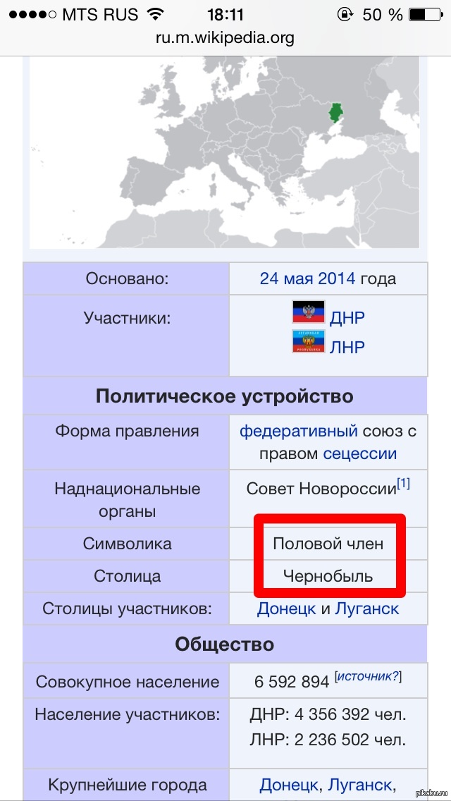 9 StarlessReira Политика Захожу на Википедию, хочу о Новороссии почитать, а там... 11 лет назад Пялилась на это минут пять и не могла понять, что тут не так. Но, благо, информацию уже изменили. Новороссия Украина Донецк Луганск Википедия