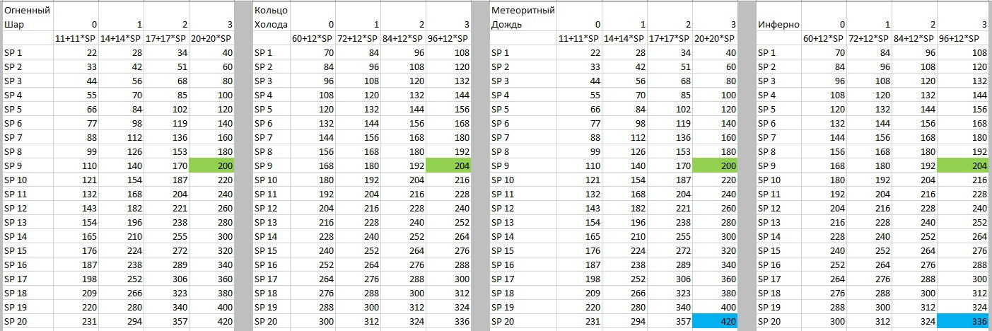 Новое заклинание Магии Хаоса 4 уровня "Инферно". Урон огнём на 5х5 клеток, стоит 18 маны. Формула урона к колдовству схожа с тем как распределяется урон в сравнении огненного шара и кольца холода. С малым SP Инферно сильнее, но чем выше SP тем сильнее метеоритный дождь. Но в тоже время у "земли" нет доп. эффектов, а у "огня" есть Пирокенез.