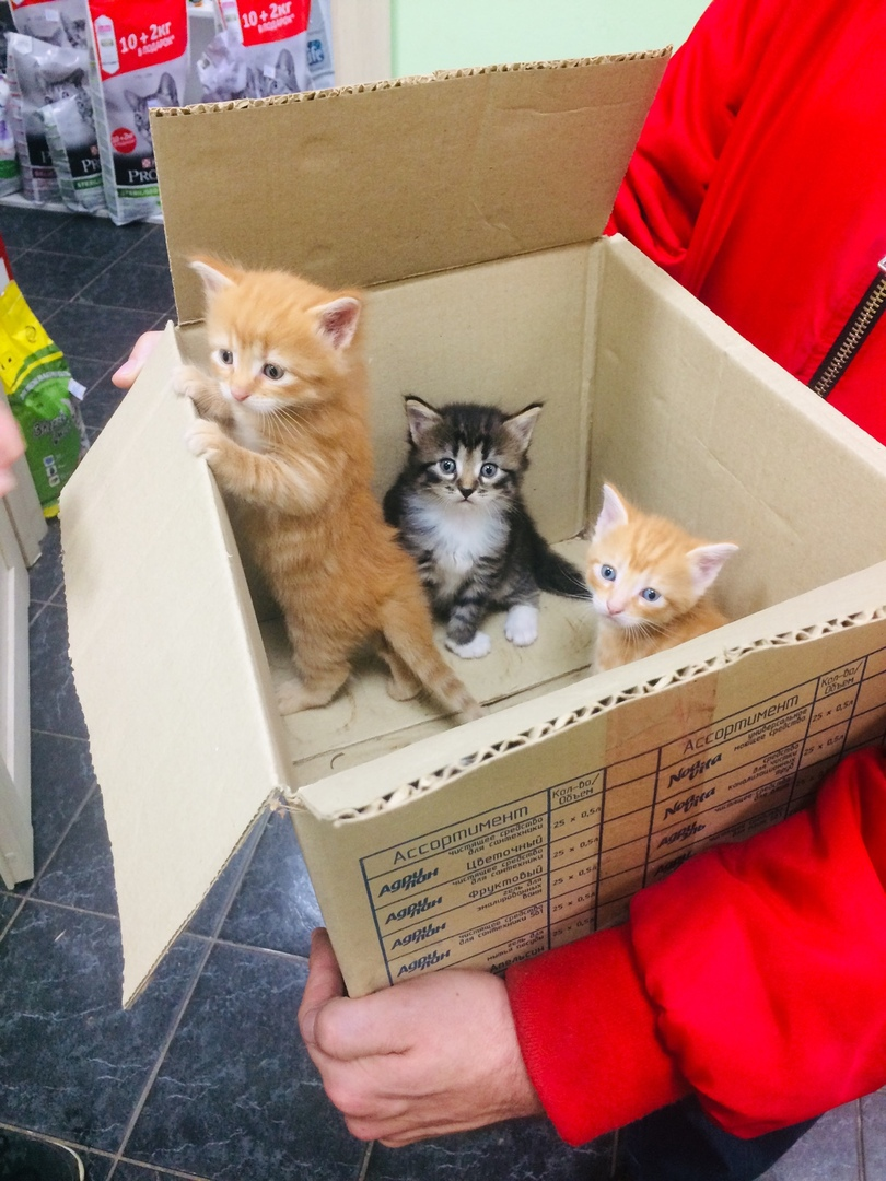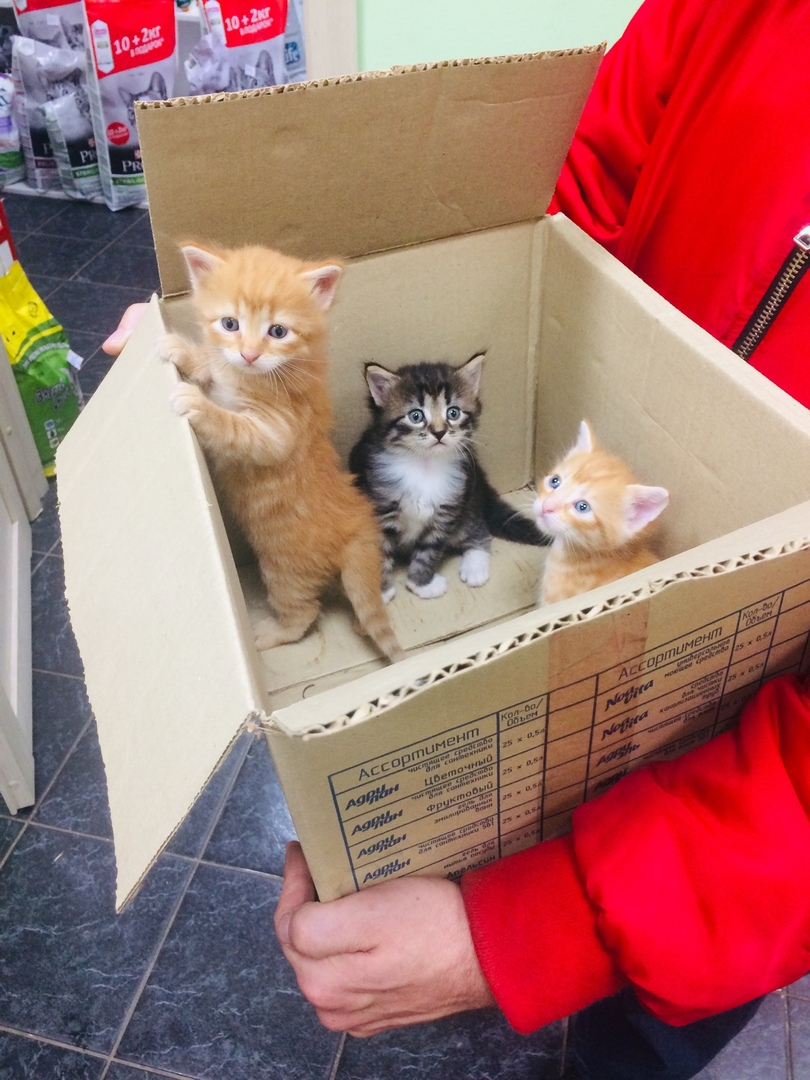 Так же одного котенка (на фото она оперлась лапами на край коробки) забрала врач клиники. Вторую серую девочку хотела забрать моя знакомая продавец в магазине, куда мы заехали купить арбуз, но у нее какой-то пунктик по поводу стерилизации и мы решили с ней второй раз подумать о котенке, когда она стерилит свою домашнюю кошку. Мы всем магазином доказывали ей необходимость стерилизации и в конце она попросила адрес клиники.