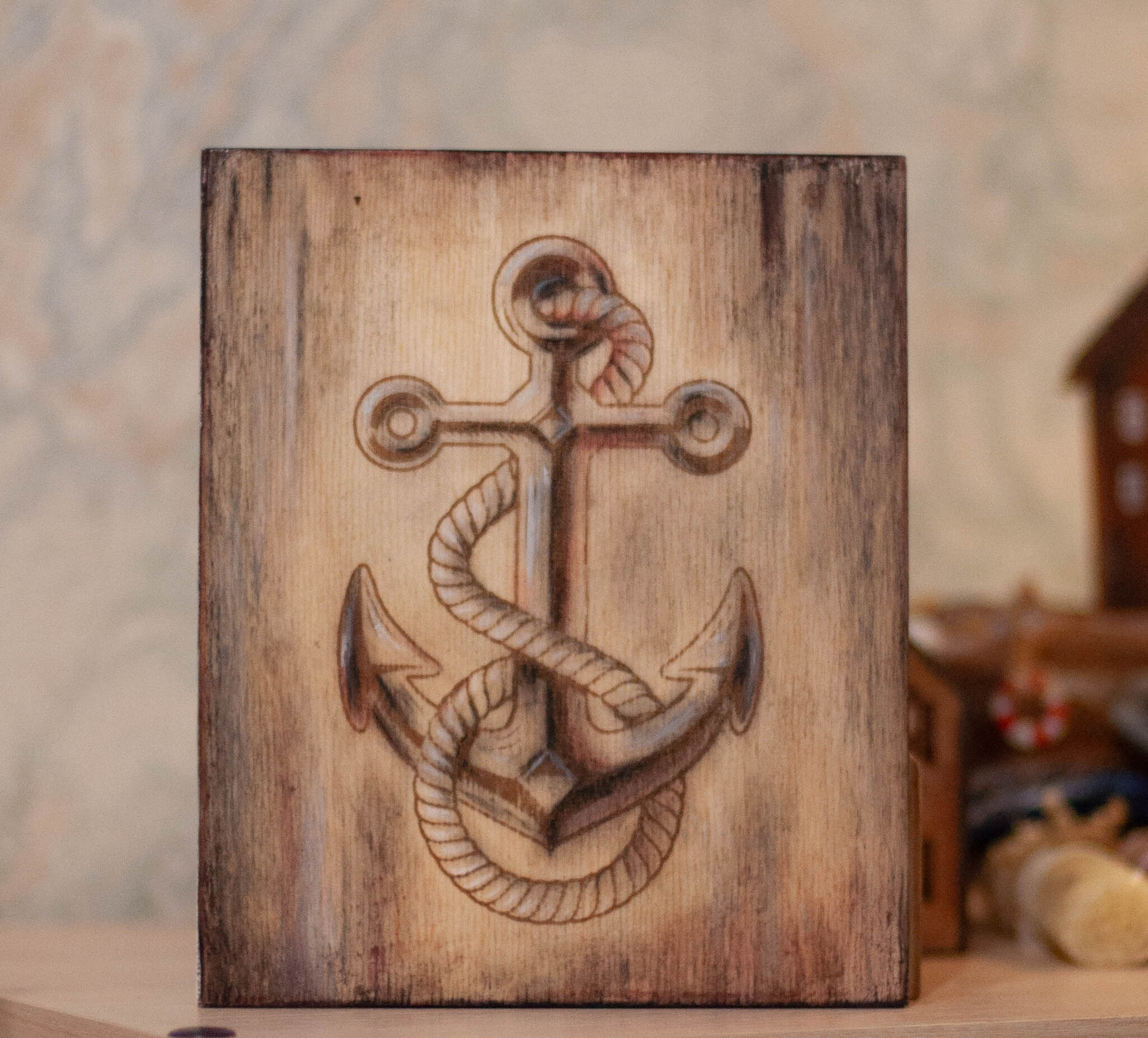 Панно-картина на дереве (толстая фанера). Лазерная гравировка и тонирование пастелью. Покрытие — художественный лак. Есть крепление на стену. Размер 16×19.5