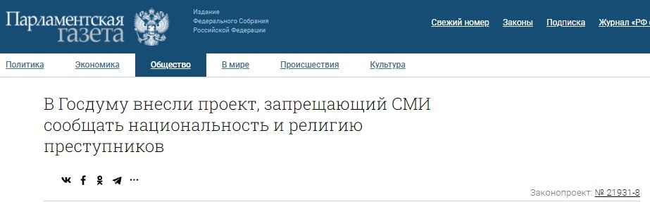 7718 Kosmonafte Законопроект запрещающий СМИ сообщать национальность9 3 года назад https://www.pnp.ru/social/v-gosdumu-vnesli-proekt-zapreshhay...https://sozd.duma.gov.ru/bill/21931-8 Новости Свобода слова Национальность СМИ и пресса Запрет Госдума Чеченцы Мигранты Кавказцы Негатив Политика Запрет упоминания национальности 538 24 16 13 2 Ещё 0