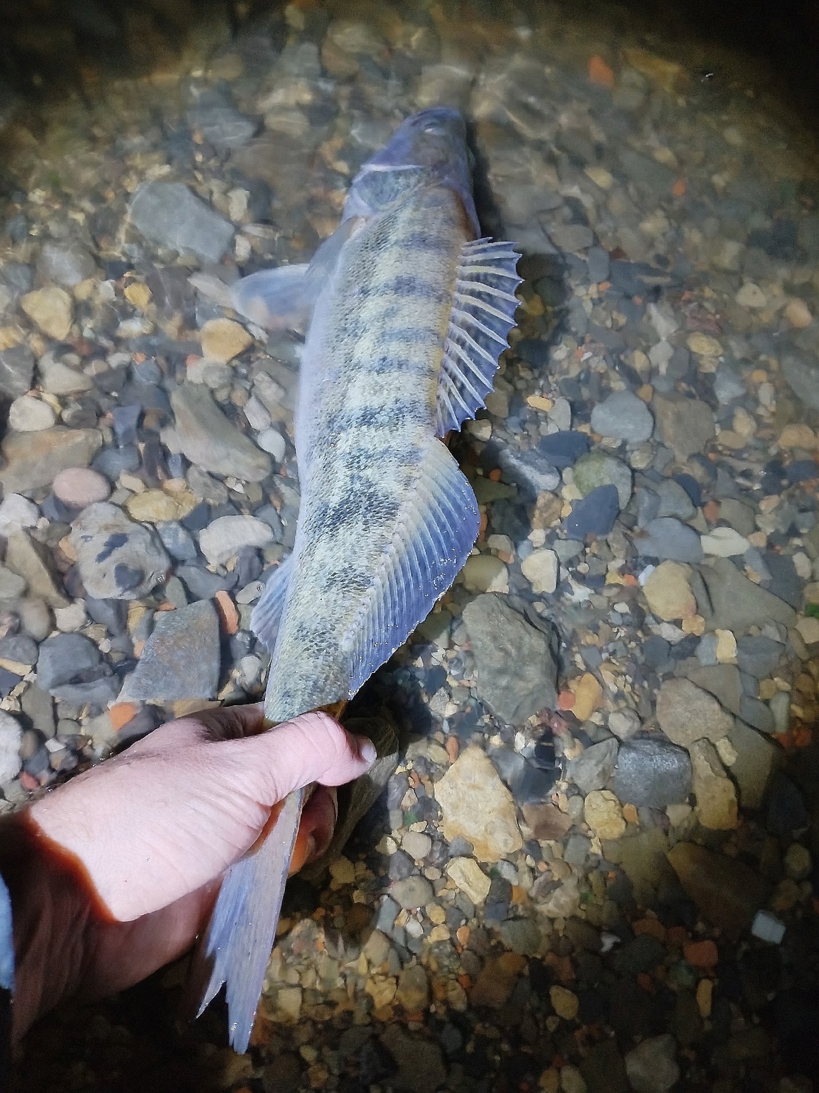 Далее было реализовано ещё 3 примерно таких же экземпляра. Увы, более крупных экземпляров не повстречал. В обычной ситуации я бы уже начал собираться домой, но в этот раз у меня были планы получить от единственного выходного всё и я добрался до "отмеченного" места для вечерней ловли. Захотел попытать счастье и увидеть "клыкастого". Данный участок более глубокий и имеет каменистое дно, поэтому очень часто по вечеру здесь можно встретить хороший "выход" судачков.