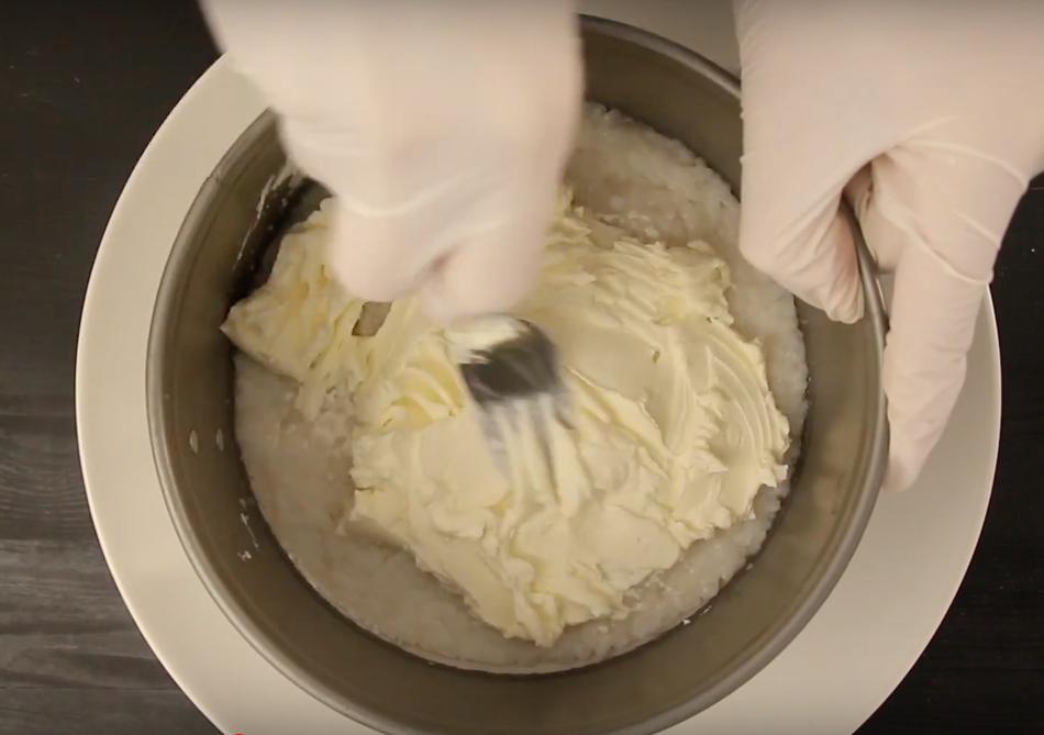 Ингредиенты: Вареный круглый рис - 450 гр. Творожный сыр - 100 гр. Маринованный лосось - 100 гр. Зеленый лук - 3 пера Укроп - 10 гр. Огурец - 100 гр. Мясо краба (консервированный) - 100 гр. Уксус - 1 ст.л. Сахар - 1 ч.л. Майонез - 2 ст.л. Чеснок - 1 зуб. Соль - по вкусу
