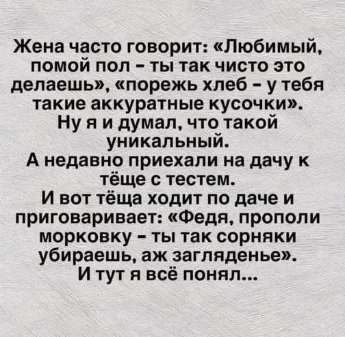 119 RNDDEM Баяны Замануха... 5 лет назад Юмор Комплимент Жена Теща Осознание Картинка с текстом Ещё 0