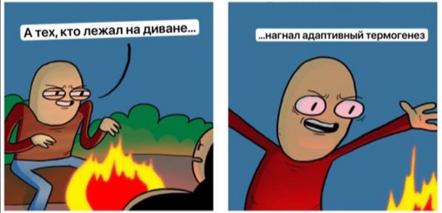 Адаптивный термогенез — дополнительная энергия, которую организм может тратить на теплообразование, особенно при воздействии холода или переедании. Это наименее стабильный компонент, подверженный влиянию окружающей среды, диет и метаболических адаптаций.