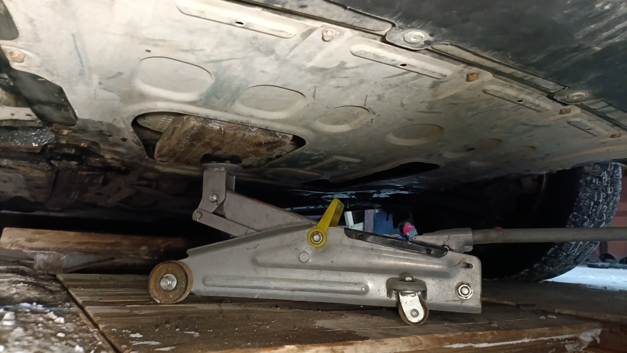 4. Поддомкрачиваем двигатель. Не пришлось даже снимать пыльник