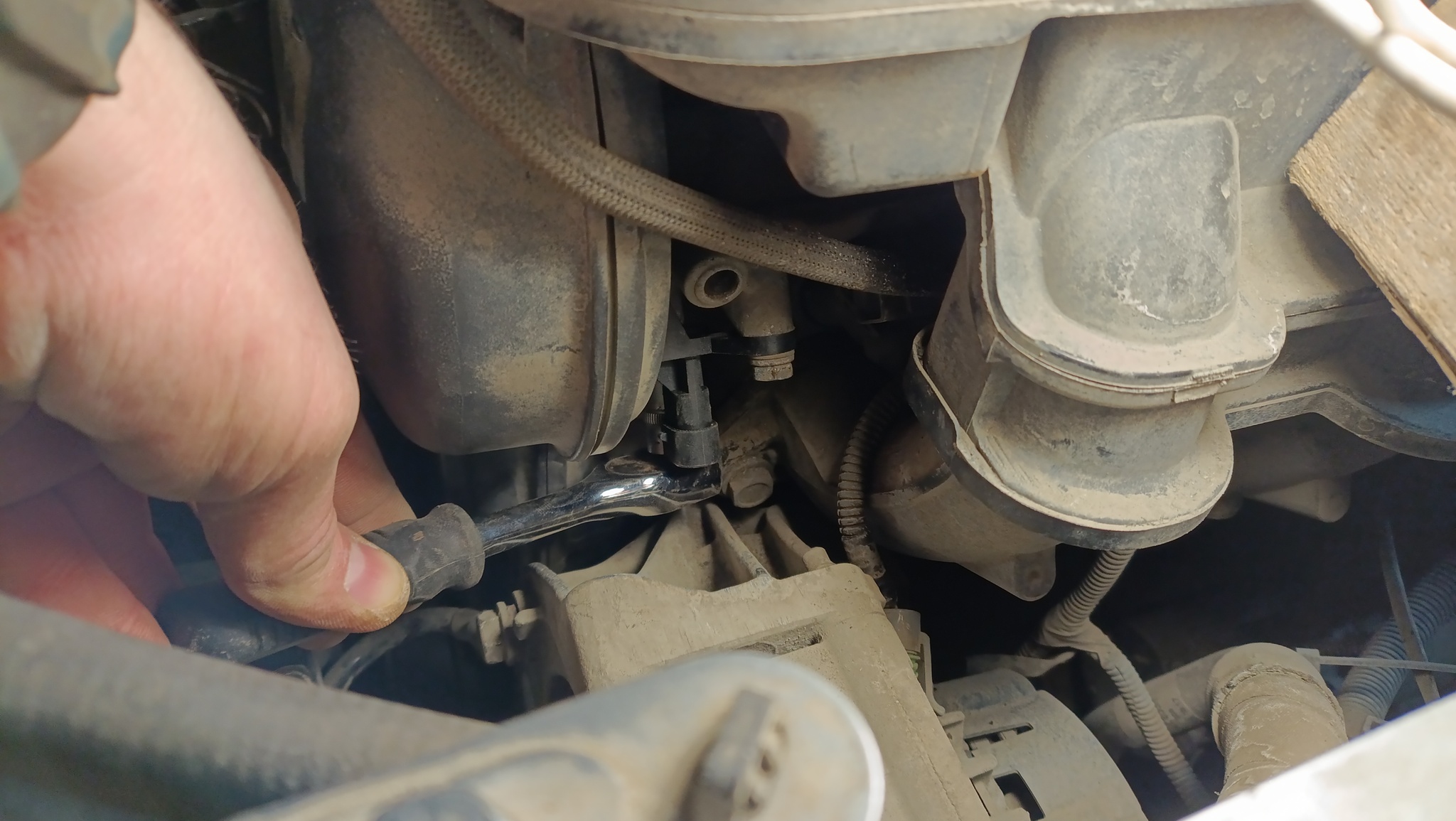 6. откручиваем без проблем передний болт крепления датчика