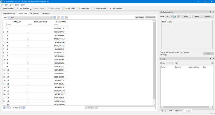 Здесь вы видите список всех игр на консоли. Нас интересует запись GAME_ID 17 (как название папки с игрой). Исправьте BASENAME ячейку с SCES-01237 на SLUS-00402 (на ID новой игры). Нажмите на Write Changes и закройте приложение. Теперь загружаем regional.db обратно на приставку и делаем ребут. Готово, вы восхитительны!