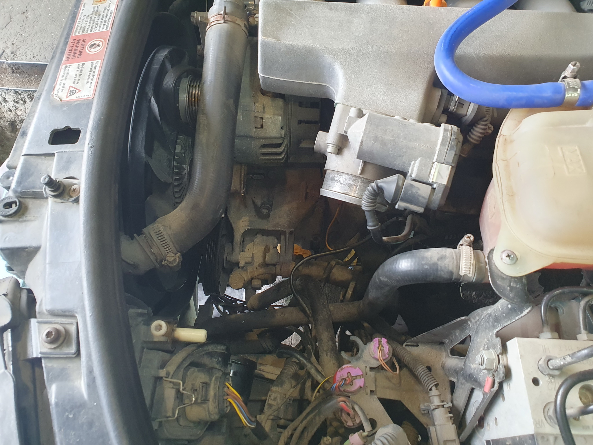 Снимаем шланг-воздуховод между интеркулером и турбиной и пластмассовый пыльник бачка жидкости ГУР так же скидываем ремень. Раз два три и насос перед нами.