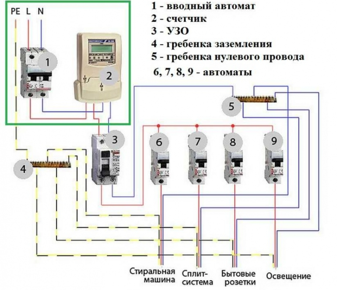 План по распределению проводки был такой, ввод находиться в жилой комнате и там будет стоять счетчик и автоматы.