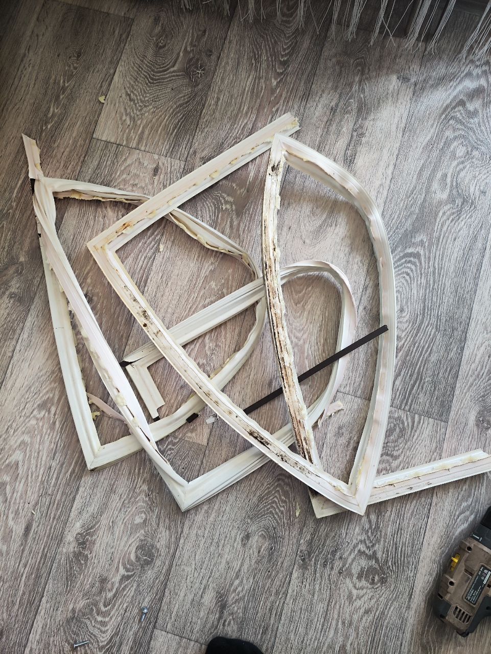 Треснуты по всему периметру,много черноты, плесени. Под замену просились давно.