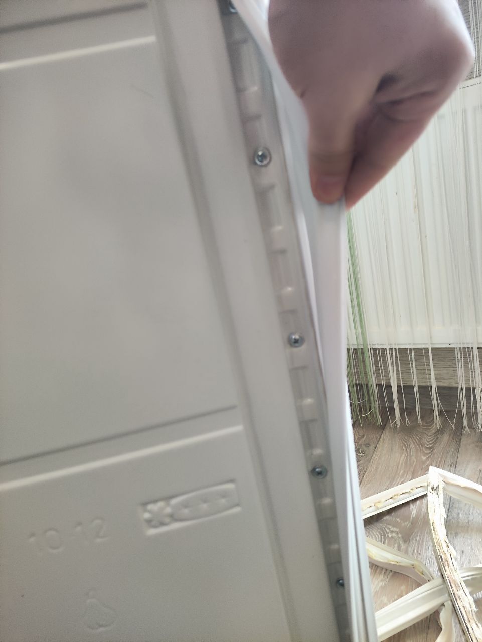 Необходимо полностью отклеить резинку от дверцы по всему периметру. После также отклеить резинку от пластика дверцы. Тут стоит быть чуть аккуратнее,чтобы пластик не треснул