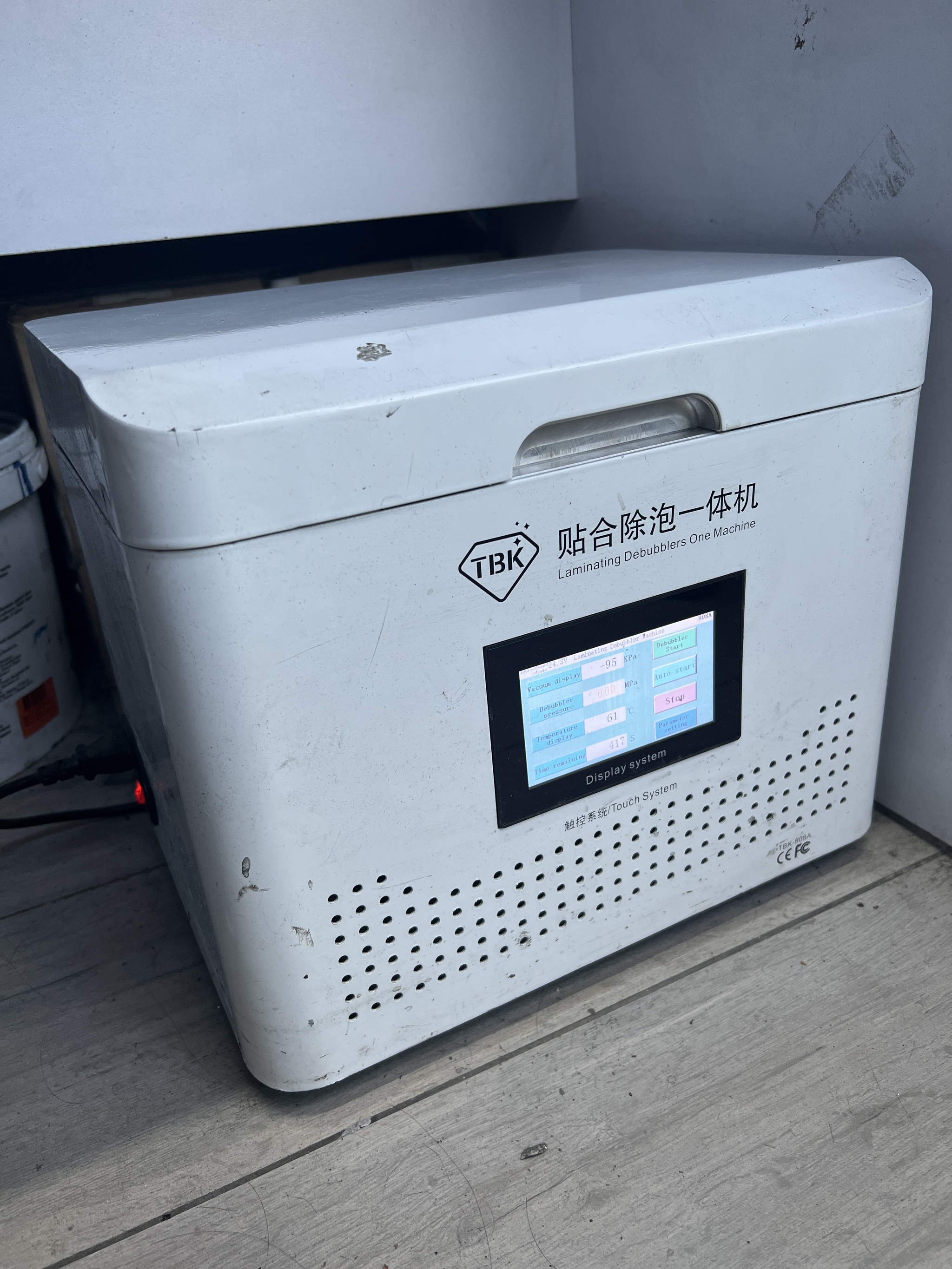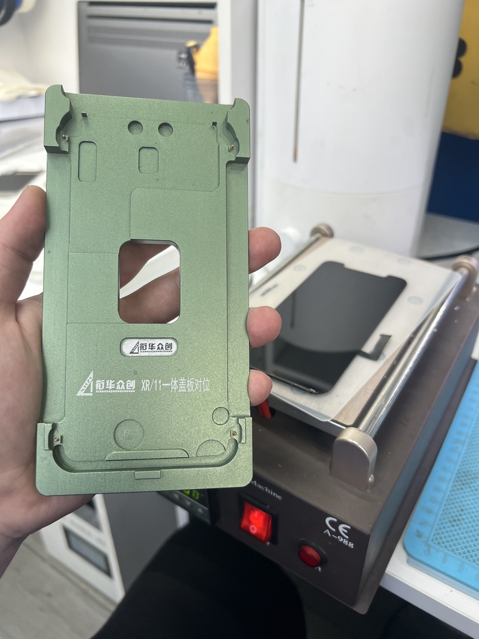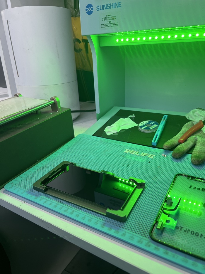 Отделив стекло с тачскрином от матрицы (при сильном разбитии лучше менять так) зачищаем остатки клея и в безпылевом пространстве центруем стекло с новым тачскрином к матрице, а затем закидываем в чудо машину.