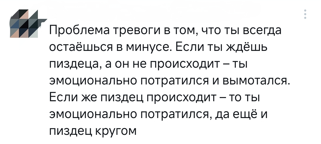 13 Dememtor Уголок Копипастера Замкнутый круг тревожника 1 месяц назад Тревога Мат Скриншот Грустный юмор Эмоциональное выгорание 2 Ещё 0