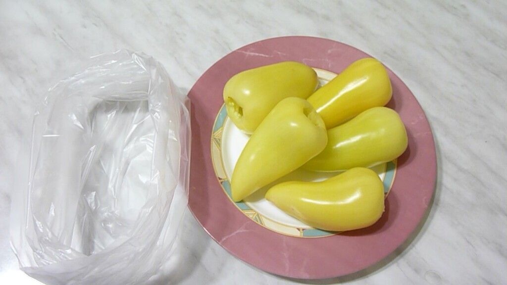 Пакет завязываю и убираю в морозилку. Замороженный перец можно фаршировать, не размораживая.