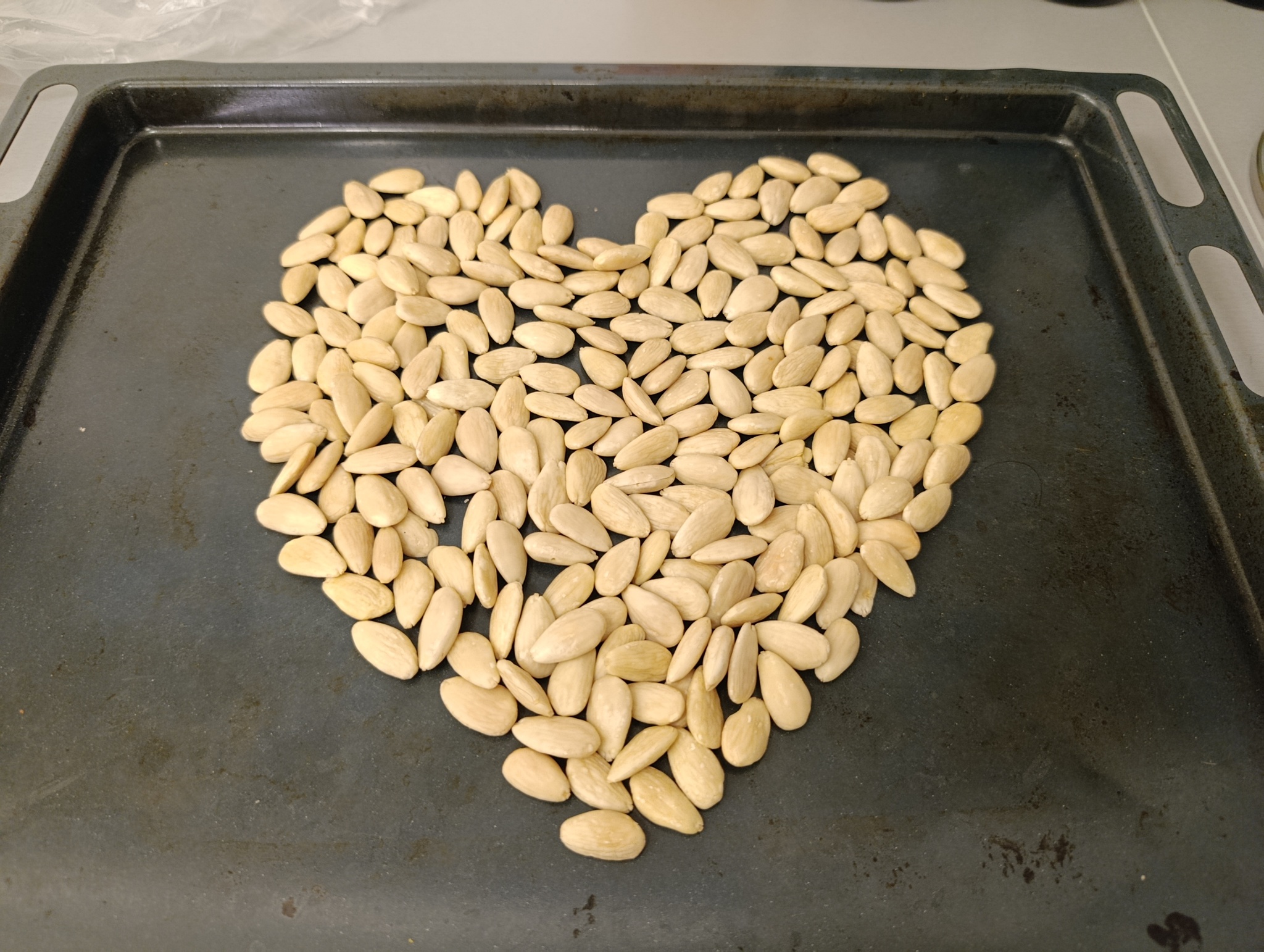 Итак, для начала нам понадобится сам миндаль. Сейчас на маркетах можно найти расфасованные орехи по адекватной цене. Я покупаю обычно 1 кг в банке, там сразу видно качество. Миндаль нужен просто сушеный, не жареный. Возьмем 300 грамм.