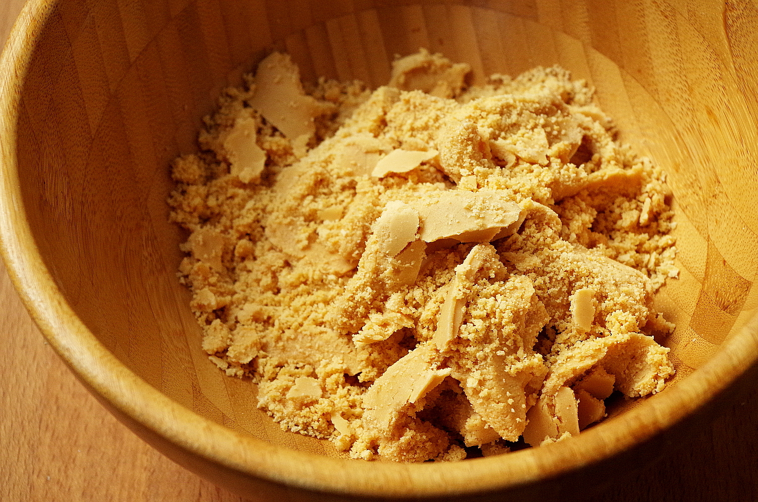 И вот у нас есть две кучки: миндальная паста и сахарная пудра. Время смешивать. А для того, чтобы все это склеить, нам понадобиться... Бухлишко! Можно брать ром, коньяк, ликер, наверное, даже водку, а вот пиво и вино не рекомендую - не тот вкус))).