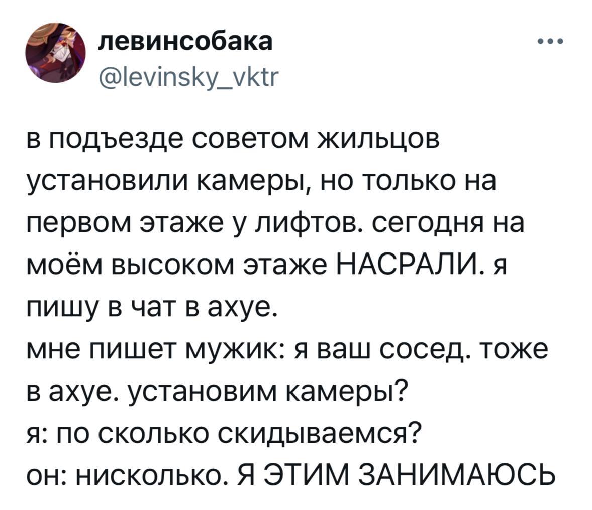 Занимается чем? Ставит камеры в подъездах?