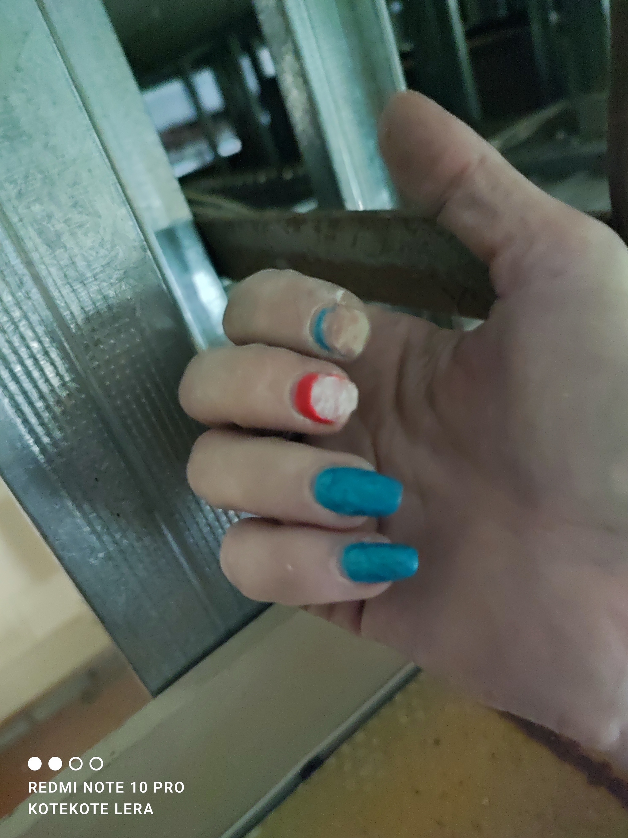 По канону эти пальцы должны быть либо зелёный - бело-оранжевый, либо оранжевый - бело-зелёный. Мизинцы оставляем былыми как неиспользуемые)