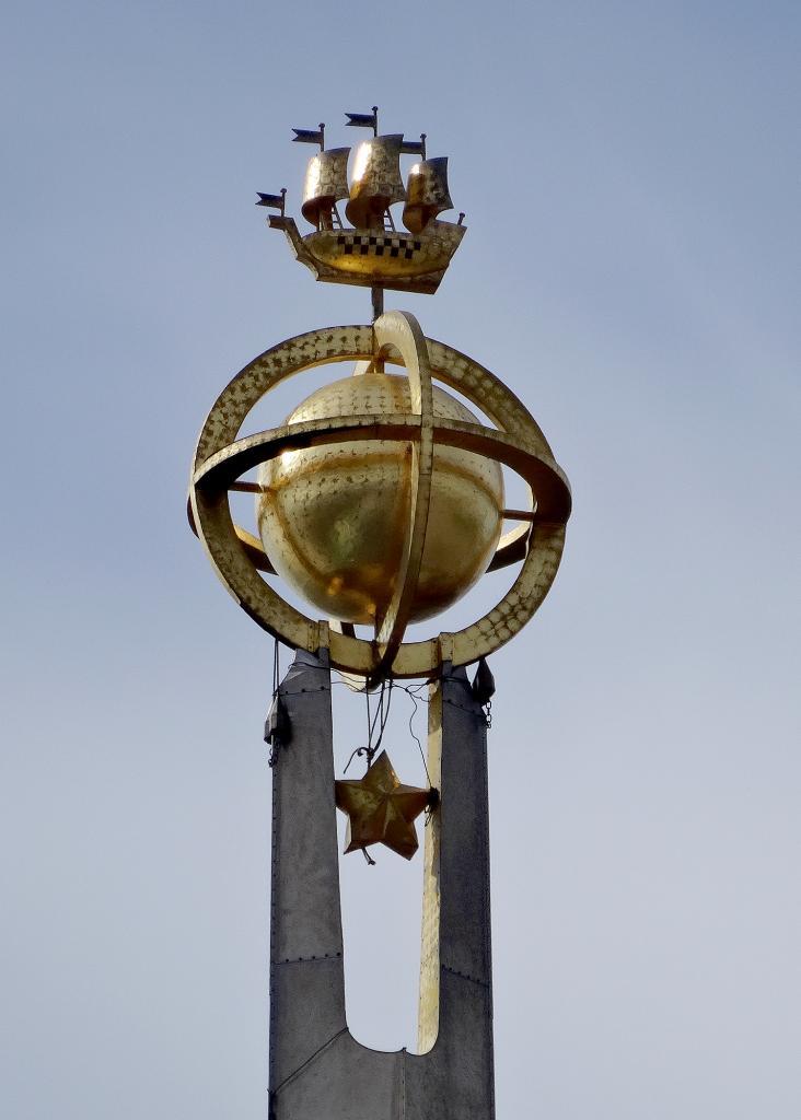 Стены вокзала облицованы объемными панелями, имеющими форму парусов, на 78-метровом титановом шпиле изображен корабль.