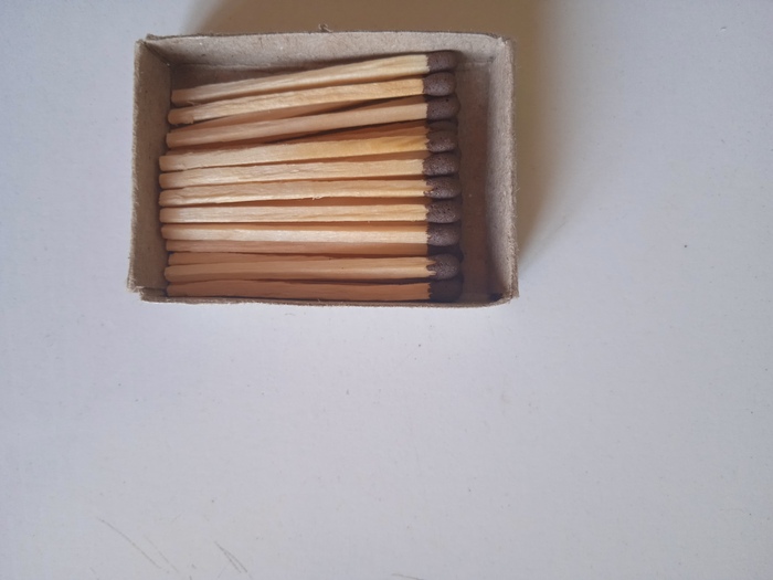 28 штук. 28, Карл! Вы там совсем ебанулись? (с) Это ещё хорошая коробка попалась, часто попадаются бракованные, без головки или с надломом. Но даже такой короткой спичкой я не могу зажечь две конфорки за раз, сгорает мгновенно. А иногда просто ломается от одного чирканья. Итого коробка в день. Что потом? Будут продавать спички десятками, обернутыми бумажкой? Или сразу поштучно?