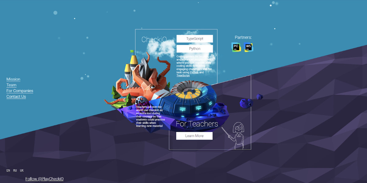 CheckIO. Это хорошая платформа для оттачивания навыков кодинга на «Питоне» и ДжаваСкрипте. Обилие заданий, игровые проекты, геймификация в виде возможности накопления очков и продвижения во внутреннем рейтинге с получением доступа к новым уровням и инструментам – плюсы.