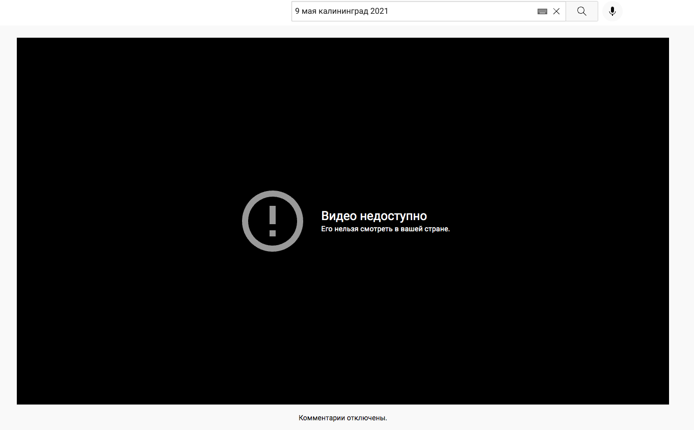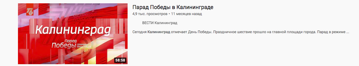10 absented Политика Занятненько... 3 года назад Хотел посмотреть, что и как было в прошлом году на 9-е Мая в Калининграде, и области в целом. И вот такой "прикол" на ютубчике: [моё] Политика YouTube 9 мая - День Победы Калининград Россия 1 Ещё 0