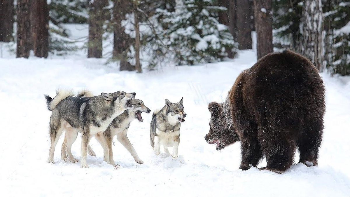 Несмотря на храбрость, справиться с медведем не может даже стая лаек. Их задача — удержать и запугать зверя.