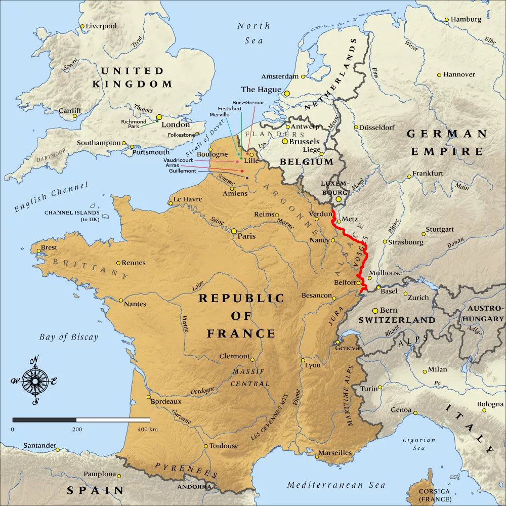 Разумеется, французы все это время не сидели сложа руки в ожидании того, когда на их страну будет совершенно нападение. Еще 8 августа главнокомандующий французской армии Жозеф Жоффр принял решение о переходе своих войск в наступление с целью освобождения Эльзаса и Лотарингии, которые Франция передала Германии после поражения во Франко-прусской войне 1871 года ( Франко-прусская война: Наполеон III VS Отто фон Бисмарк ). 14 августа французские войска вторглись на территорию Германии и, не встретив сопротивления противника, продвинулись вглубь немецкой территорию на 25км. Однако между французскими армиями быстро образовался большой разрыв, чем незамедлительно воспользовались немцы, которые нанесли по французам контрудар и отбросили их на исходные позиции.