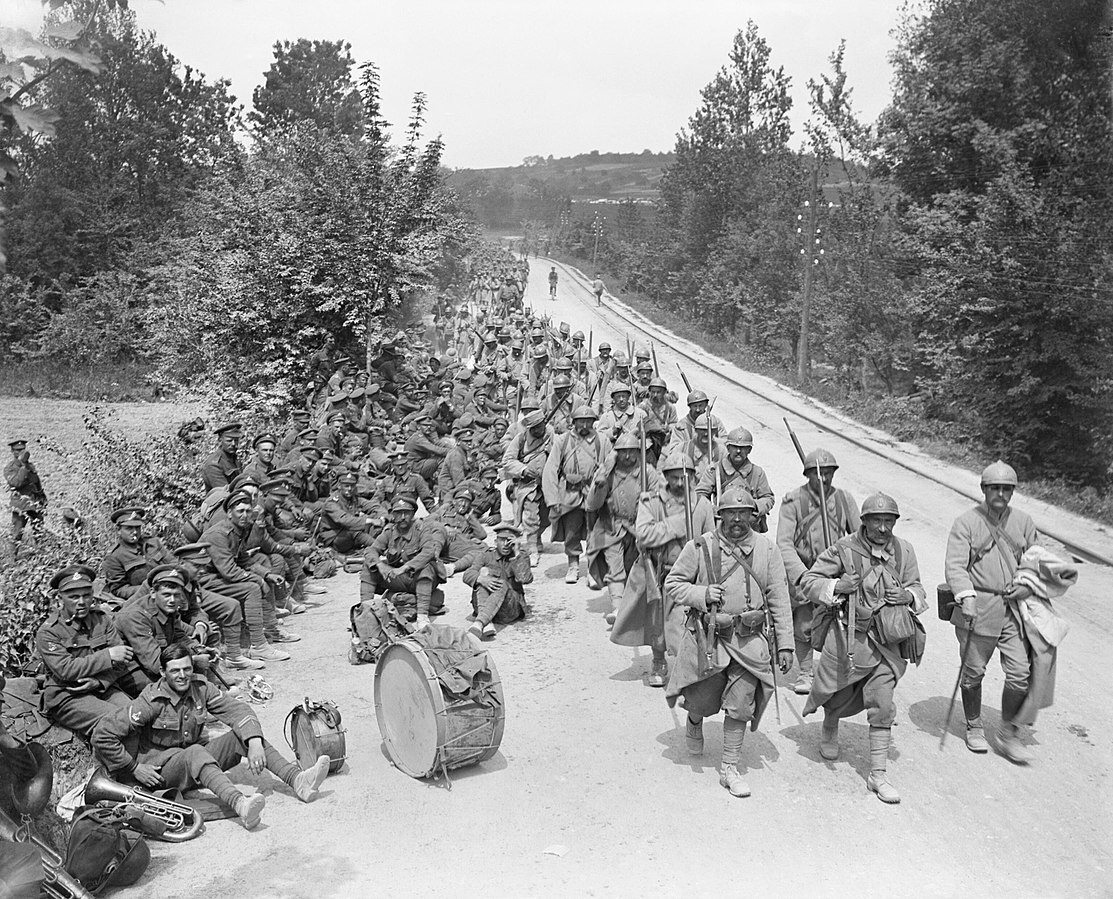 На франко-бельгийской границе столкновения, в которых немецкой армии противостояли объединенные англо-французские войска, начались 21 сентября. Потерпев поражения в серии пограничных сражений, французы начали отступление по всему фронту, что быстро создало угрозу потери Парижа, в результате чего французское правительство покинуло столицу и перебралось в Бордо. Воодушевленные первоначальными успехами и предвкушавшие скорую окончательную победу, немецкие солдаты неуклонно шли вперед, преодолевая в среднем 30-40 км в день. Такие же длительные переходы совершали и отступающие французы. Для осознания, насколько это чудовищно большое расстояние, стоит рассказать о том, что приходилось носить на себе среднестатистическому пехотинцу европейской армии в Первую мировую войну. Общий вес воинского снаряжения солдата доходил до 25 кг и включал в себя: винтовку со штыком, подсумок с патронами, саперную лопатку, фляжку с водой, а также вещевой мешок со сменным обмундированием, столовыми принадлежностями и неприкосновенным запасом провизии. В теплое время пехотинцам приходилось нести еще и шинель. Немцы укладывали ее поверх вещевого мешка, предварительно завернув в непромокаемую материю, а, например, русские носили ее через плечо, свернув в скатку. Длительные переходы с таким грузом на плечах высасывали из солдат все жизненные соки и иногда доводили их до полуобморочного состояния. Так описывает встречу с немецкими солдатами житель одного французского городка: "Немцы, остановившиеся на ночлег в моем доме, валились с ног от усталости. "Сорок километров! Сорок километров! " вот единственные слова, которые я вечером услышал от них. Нормальную речь они обрели только утром".