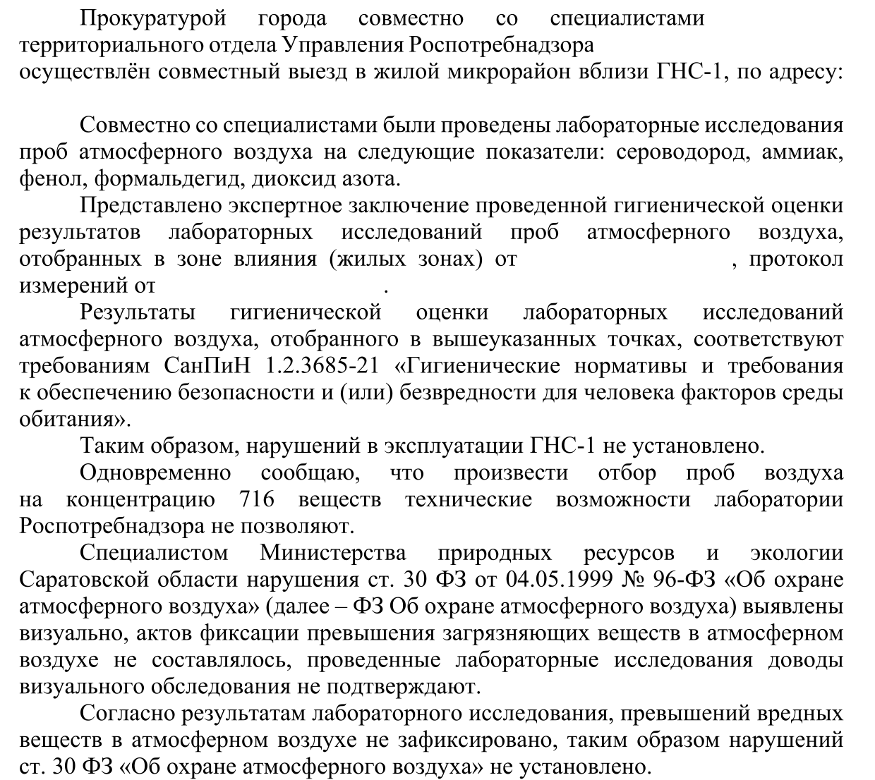 В итоге мне пришел ответ от Прокуратуры, которая совместно с Роспотребнадзором якобы выехали на место, произвели отбор проб воздуха и не выявили никаких нарушений: