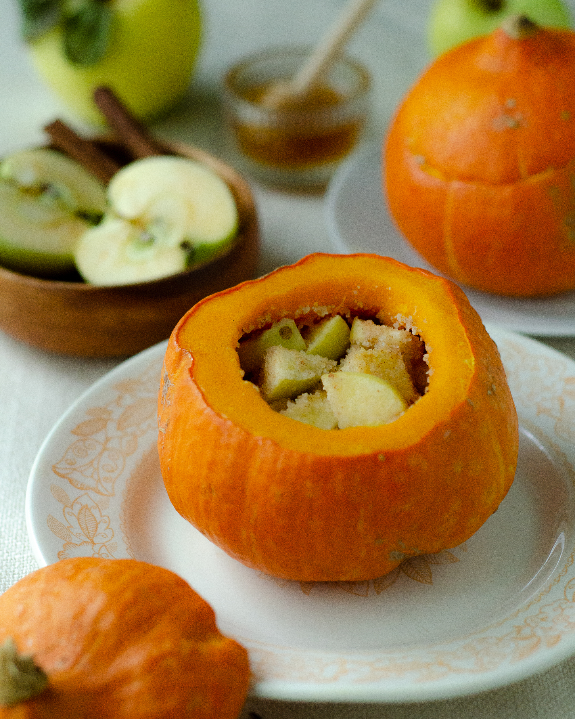 У тыквы аккуратно срезать верхушку. Вытащить все внутренности.