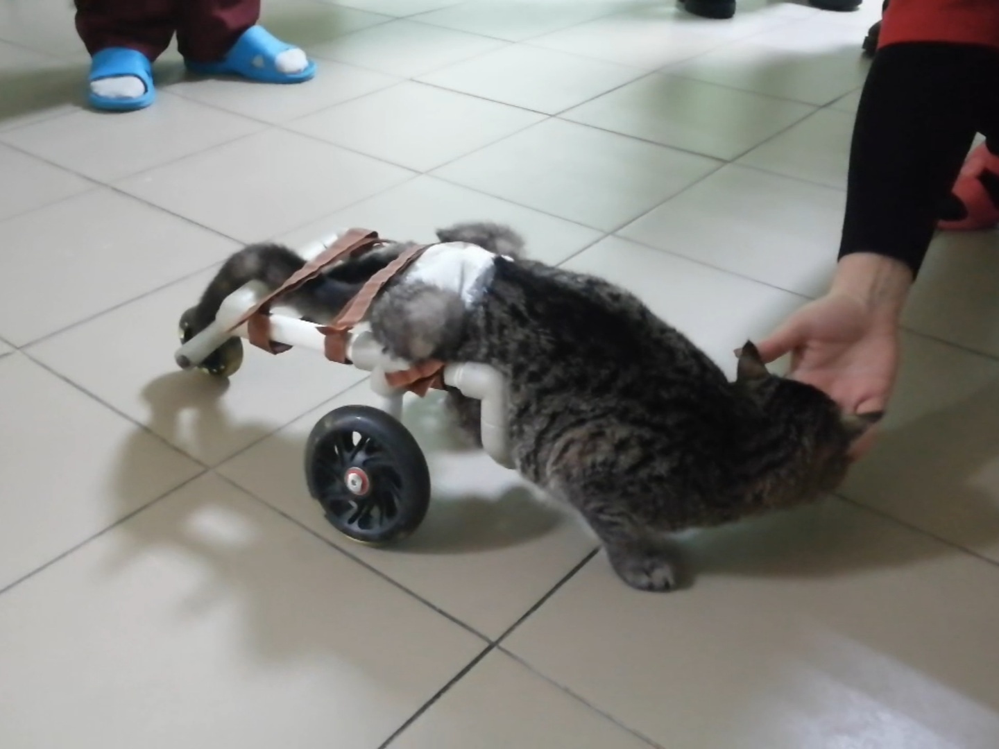 Бонусом очень маленькое видео, на котором кот через 10 минут после примерки своих новых лапозаменителей. (Громкий звук.)