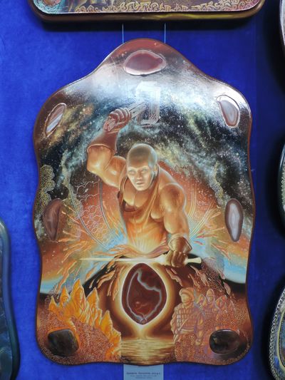 После окончания фильма (который действительно снял многие вопросы) нас провели по залам. Экскурсовод не претендовал на собственный особый вклад в дело изучения наследия Рерихов, однако рассказывал тоже с душой и знанием дела, слушать было интересно. Признаться, до этого мы мало что знали о Рерихе и его экспедициях. Ну, картины видели - кто их не видел? В детстве я ходила на выставку с классом художки, что-то рассказывали, но за давностью лет все забылось. В 2008 почти случайно попали в музей Рериха в п. Ангасолка на юге Байкала во время небольшого похода с друзьями по Кругобайкальской железной дороге. Фотографии сохранились, а вот сам музей сгорел в 2013 году и сейчас восстановлен в другом здании. Там, правда, тоже мало что рассказывали, пустив самим побродить по залам.