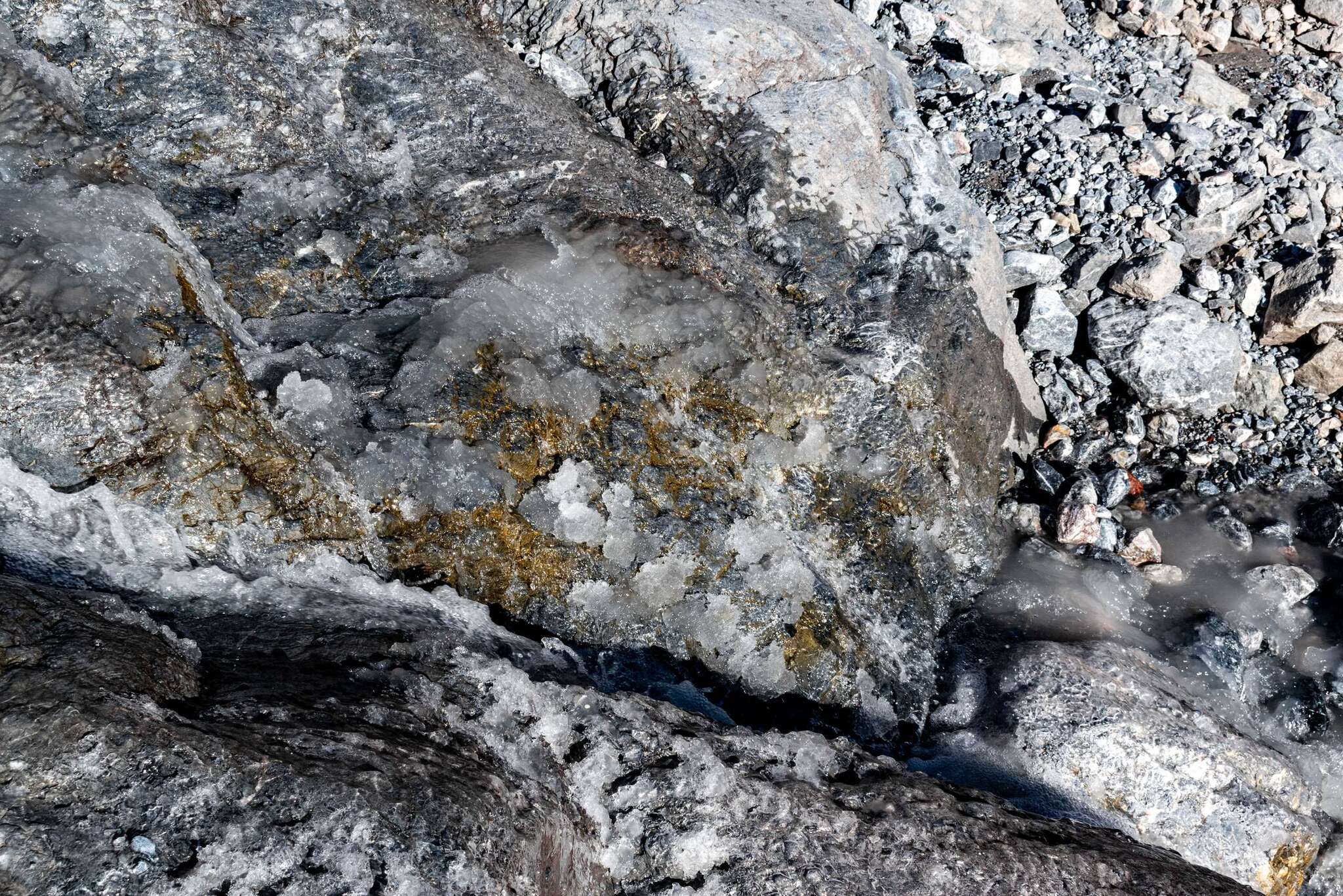 Снежно-ледяные хлопья на ручье