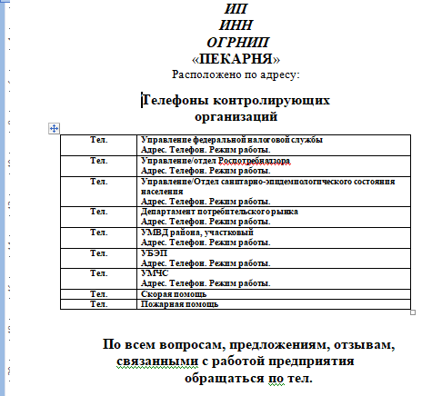 - Перечень всех ведомств и органов, их адреса и телефоны контролирующих органов, выполняющих функцию контроля: