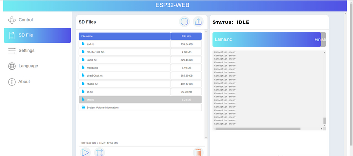 Сразу по поводу веб интерфейса. В моем случае гравер и пк находятся в разных комнатах. Порядок действий в данной ситуации таков. Подготавливаешь файл на пк, перекидываешь по беспроводной сети на флешку гравера и топаешь выставлять заготовку под гравирование.